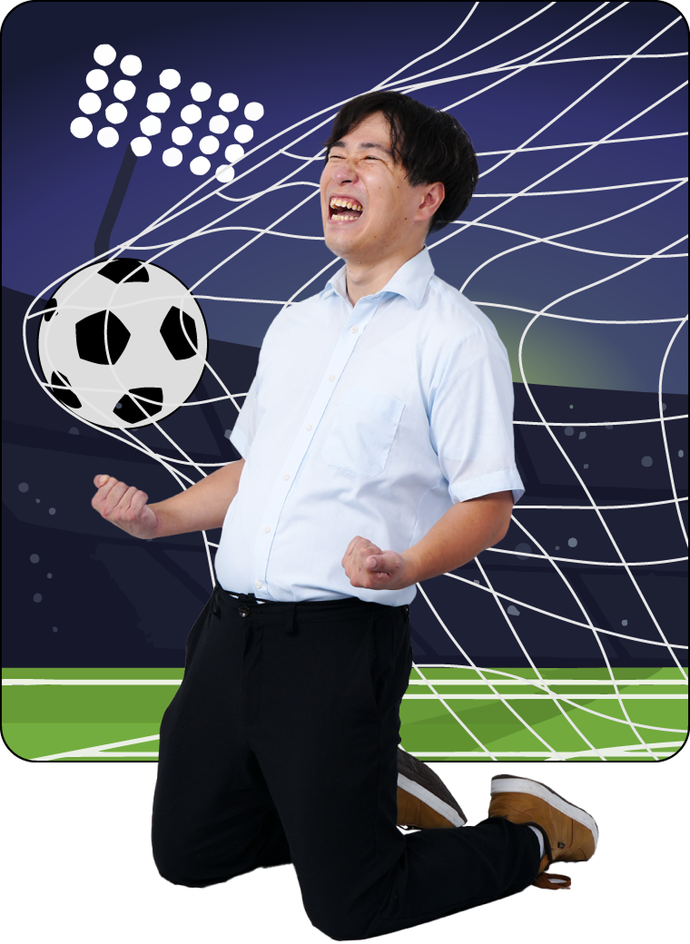 - 趣味はサッカー、カラオケ、旅行、ゲーム、そして美味しい食べ物巡りと、とても多趣味です。サッカーは学生時代から続けていて、今も社内でフットサル部を立ち上げ活動しています。カラオケは幅広いジャンルを歌い、中森明菜の曲までレパートリーに入っています(笑)。旅行や食巡りも好きで、休日はアクティブに過ごすことが多いです。