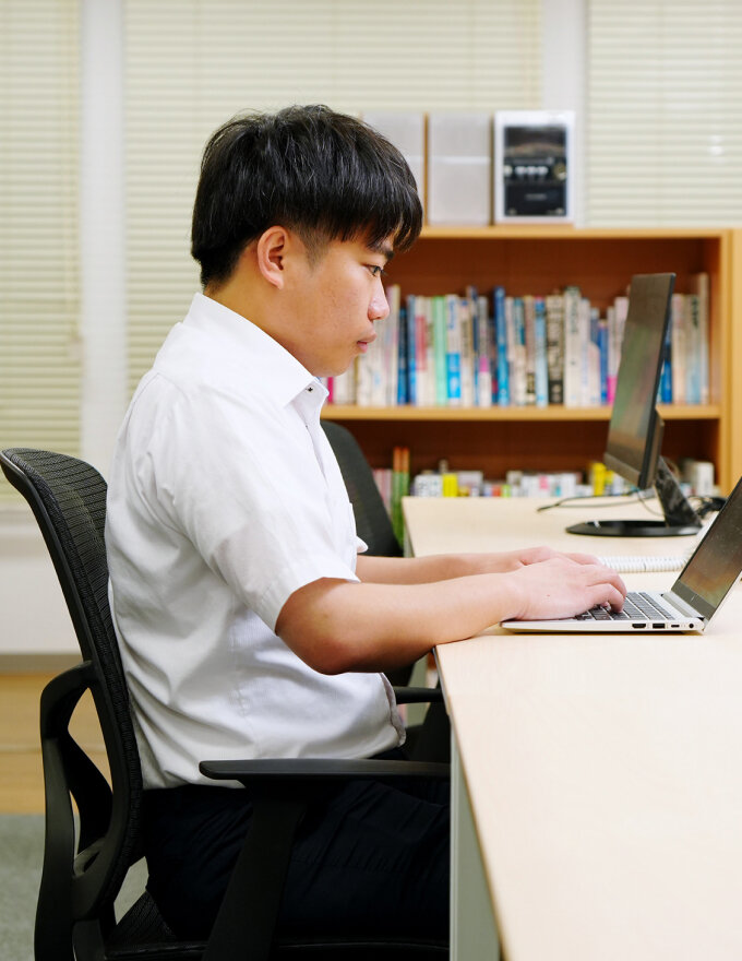 - 現在は現場で受発注システムの開発に携わっています。具体的には、既存システムの一部を切り出してサーバーを移行したり、スクリプトをジョブネットで実装したりと、幅広い業務を担当しています。現場にはメクゼスから私一人で出向しているため、最初は「やっていけるかな」と不安もありましたが、現場の方々がとてもフランクに接してくださり、次第に安心できるようになりました。今では一緒に飲みに行くこともあり、仕事だけでなくプライベートでも良い関係を築けています。そんな環境のおかげで、日々楽しく働けていますね。